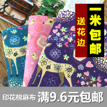 特价七彩麋鹿印花亚麻棉麻布窗帘沙发套抱枕靠垫手工diy布料面料