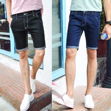 时尚百搭夏季短裤男 牛仔五分裤潮 学生弹力休闲简约纯色薄5分裤