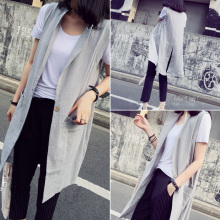 春夏新款上衣韩国纯色百搭简约修身棉麻中长款马甲外套开衫女夏潮