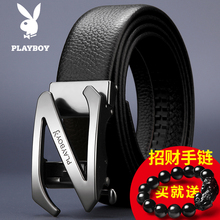 花花公子皮带 正品男士牛皮青年休闲自动扣腰带 真皮商务柔软潮