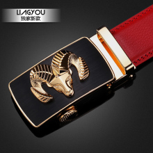 本命年男士皮带纯牛皮腰带商务百塔潮流裤带羊年结婚红色皮带包邮