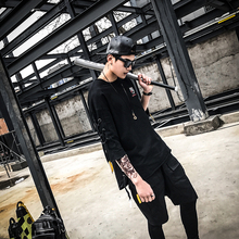 2017高街风时尚男士T恤中长款宽松五分T恤男半袖热血高校潮T