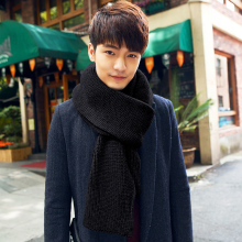 东奈 韩版秋冬季纯色毛线围巾男潮针织保暖韩国男士围巾围脖情侣