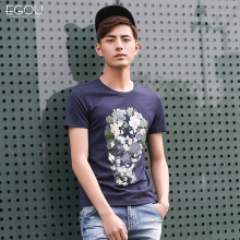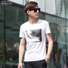 Egou夏季纯棉印花t恤男短袖修身青年韩版时尚圆领薄半袖体恤潮装