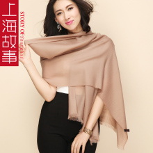 上海故事 女士春秋冬季羊毛围巾 加长款流苏保暖韩国围巾披肩两用