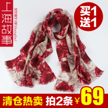 上海故事丝巾春季2017新款百搭真丝丝巾女长款桑蚕丝围巾礼服披肩