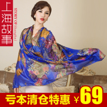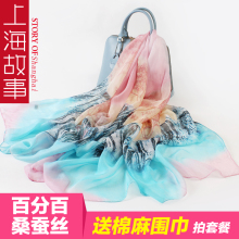 上海故事丝巾 超大桑蚕丝真丝围巾 女士春秋丝巾长款围巾披肩两用