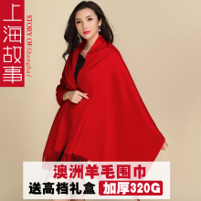上海故事羊毛围巾女士秋冬季加厚流苏长款男士情侣纯色大红色披肩