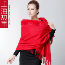 上海故事羊毛围巾 高档獭兔毛皮草冬女超大长款加厚披肩围巾两用