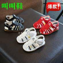 夏季新款男女宝宝鞋子小童叫叫鞋0-1-2岁婴幼儿软底包头凉鞋防滑