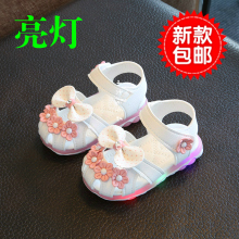 2017夏季新款女宝宝学步凉鞋1-2岁3婴幼儿包头凉鞋亮灯韩版公主鞋