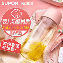 苏泊尔双层玻璃杯 男女士便携水杯带盖茶漏过滤透明办公室茶杯子