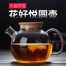 悦物木盖加厚玻璃壶圆壶花茶壶冷水壶泡茶壶过滤耐热玻璃水壶套装