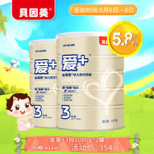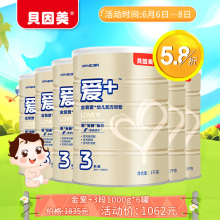 贝因美 金装爱+ 幼儿配方奶粉3段1000g*6罐
