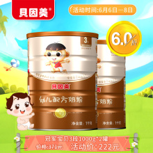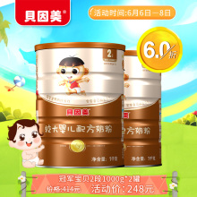 贝因美 冠军宝贝 较大婴儿配方奶粉2段1000g*2罐