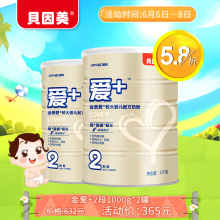 贝因美奶粉 金装爱加+ 较大婴儿配方奶粉2段1000g*2罐装