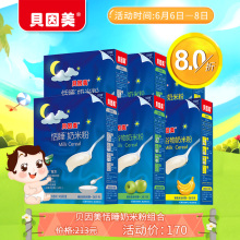 贝因美宝宝辅食恬睡奶米粉+香蕉谷物+苹果谷物婴儿奶米粉225g*6盒