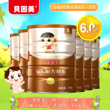 贝因美冠军宝贝幼儿配方奶粉3段1000g*6罐装 婴儿牛奶粉