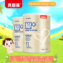 贝因美金装爱加一段奶粉 0-6个月婴儿1段配方牛奶粉1000g*2罐
