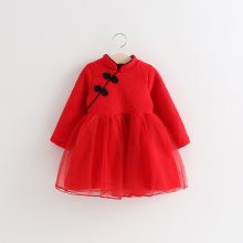 童装冬款新女童旗袍领盘扣连衣裙新年儿童裙子加绒长袖连衣裙唐装
