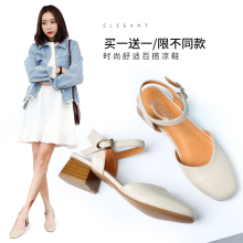 艾斯臣包头粗跟凉鞋女学生夏2017新款玛丽珍中跟英伦风中空女鞋子