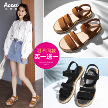 艾斯臣凉鞋女2017夏季新款休闲真皮平底沙滩罗马凉鞋学生百搭女鞋
