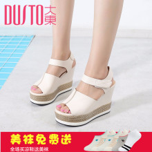DUSTO/大东2017夏季新款韩版高跟厚底坡跟魔术贴女凉鞋DW17X1255A