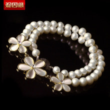 水晶女士珍珠韩版手链女时尚饰品玉髓黑玛瑙多层 手串