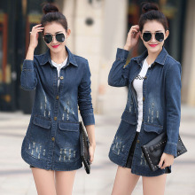 牛仔外套女长袖大码女装春秋新款韩版休闲宽松风衣外套女潮中长款
