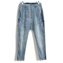 外贸尾单 夏季新款休闲女装磨白牛仔裤哈伦裤掉档裤排扣小脚裤潮