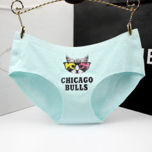 全棉女士内裤棉质面料透气舒适一片式无痕低腰卡通可爱纯棉三角裤