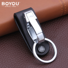 博友真皮汽车钥匙扣男士腰挂穿皮带创意双环牛皮高档锁匙扣挂件