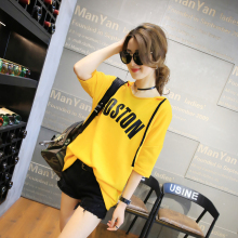 短袖t恤女 宽松韩版学生2017夏装上衣新款女装潮款连帽字母卫衣