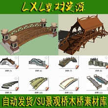 SU仿古中式园林景观桥梁拱桥石桥木桥模型素材库sketchup草图大师