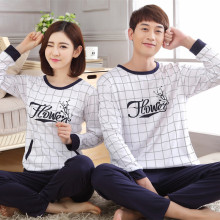 春季款纯棉长袖情侣睡衣舒适全棉女人休闲居家服时尚男士睡衣套装