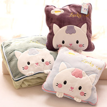 正版蓝白玩偶 可爱小猫咪法兰绒空调毯 儿童毛毯 靠垫抱枕被两用