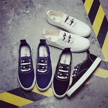 新款帆布鞋韩版潮低帮布鞋懒鞋黑色流行男鞋男生板鞋男士休闲鞋