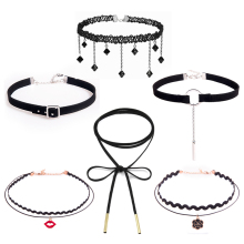 项链女锁骨链新款日韩蕾丝颈带choker黑色项圈脖子饰品10件套包
