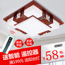 LED中式吸顶灯木艺书房灯实木羊皮灯仿古客厅灯卧室灯室内灯包邮