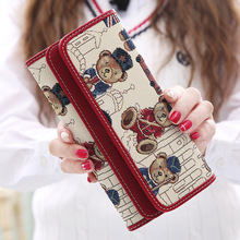 邻家小妃2017冬季新款长款钱包女小熊时尚可爱双搭扣多卡位手拿包