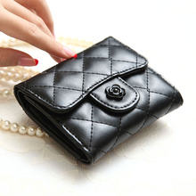 大钞夹3折相片位PU软面合成革暗格绣花全新横款格子短款日韩卡位