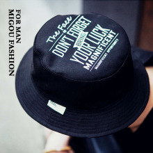 新款韩国春夏男士渔夫帽盆帽韩版潮帽字母刺绣户外休闲遮阳帽子