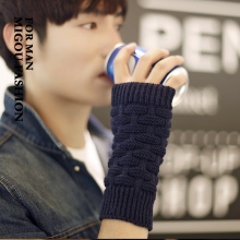 米购韩版秋冬天保暖半指男士手套潮毛线无指露指上网打字短手套