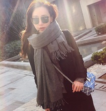 韩国女士仿羊绒围巾女冬季加厚超长款韩版百搭纯色流苏学生披肩女
