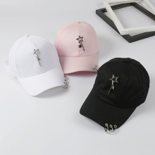 棒球帽子女夏天韩版个性铁环吊坠嘻哈弯沿情侣遮阳鸭舌帽朋克风潮