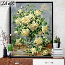 赵公子 数字油画diy花卉客厅填色油彩画数码手绘装饰画白牡丹