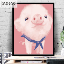 赵公子数字油彩画diy动物卡通数码填色成人手绘装饰画 粉嫩小猪