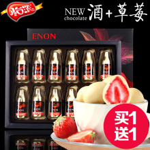 怡浓情人节纯可可脂草莓夹心白巧克力diy零食+酒心巧克力礼物