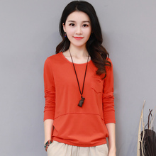 长袖棉T恤女宽松百搭上衣2017春季新款韩范圆领纯色春装女装小衫