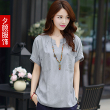 圆领亚麻T恤女2017夏季新款女士小衫时尚大码显瘦文艺风女装